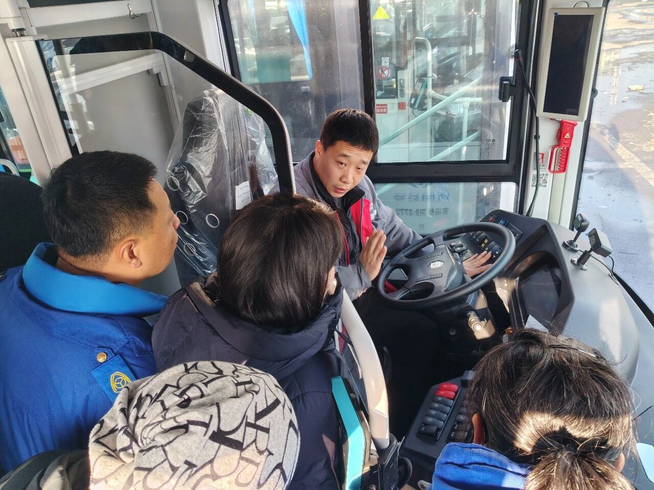 培訓(xùn)中,主講人系統(tǒng)介紹了新投運(yùn)公交車輛的整體情況,并圍繞內(nèi)外設(shè)備、中控系統(tǒng)、動力與制動系統(tǒng)以及關(guān)鍵零部件等核心內(nèi)容,進(jìn)行了實(shí)地講解,幫助參訓(xùn)人員建立對新車型技術(shù)結(jié)構(gòu)及運(yùn)行特點(diǎn)的框架性認(rèn)知。針對新車技術(shù)狀態(tài),培訓(xùn)明確了相應(yīng)的維護(hù)保養(yǎng)標(biāo)準(zhǔn),詳細(xì)講解了運(yùn)營前檢查要點(diǎn)、行車安全注意事項(xiàng)以及常見故障處理方法。